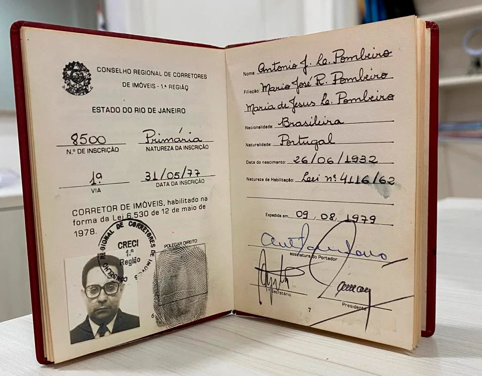 Primeira carteira de habilitação para corretagem de imóveis de nosso fundador, Antônio Joaquim Licéia Pombeiro.